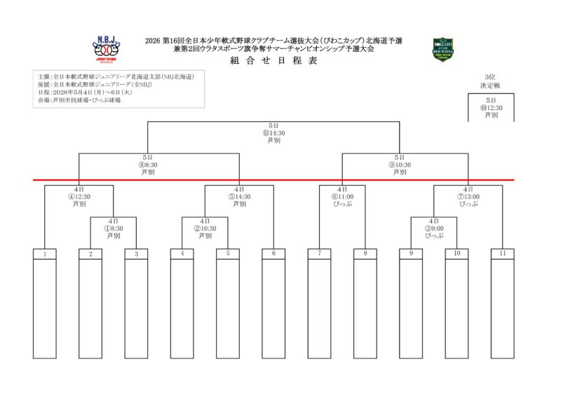 また、会場につきましては先日ぴっぷ球場の使用許可が出ましたので、大会1日目のトーナメントの1会場と、2日目の交流戦会場はぴっぷ球場とさせていただきました。2会場がかなり離れてしまいご不便をお掛けするかと存じますが、より良い球場で試合をしていただきたいという思いからぴっぷ球場となりましたので、どうぞご理解ください。